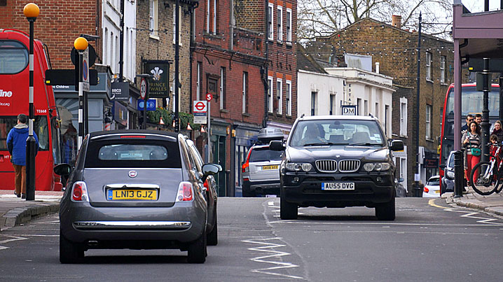 Wie man sieht, fahren Engländer vorzugsweise auf der falschen Straßenseite. Finden sie völlig normal, nur für Besucher vom Kontinent ist es leicht gewöhnungsbedürftig. Wie so einiges auf der Insel - z.B. Bohnen in Tomatensoße zum Frühstück.